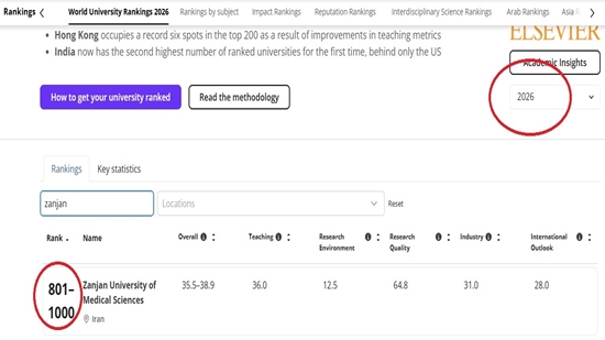 ارتقای جایگاه دانشگاه علوم پزشکی زنجان در رتبه‌بندی جهانی تایمز ۲۰۲۶