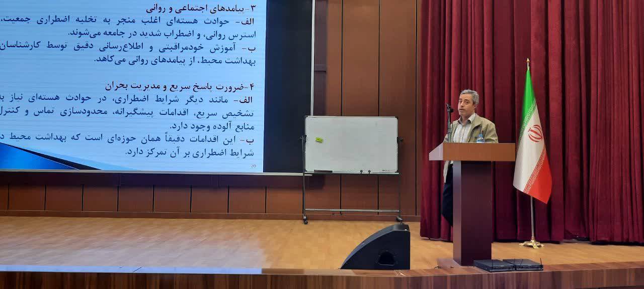 دکتر ابراهیم خسروشاهی، رئیس اورژانس پیشبیمارستانی و مدیریت حوادث و مسئول پدافند غیرعامل دانشگاه، در بخش تخصصی همایش "خود مراقبتی در بحران های نظامی و شرایط اضطرار" به تشریح جامع حوادث (CBRNE) شامل حوادث شیمیایی، بیولوژیکی، رادیواکتیو، هستهای و نقش و اهمیت این نوع حوادث بر سلامت جامعه پرداخت.
