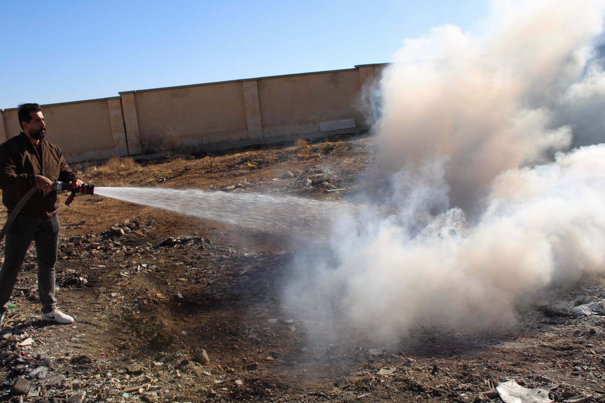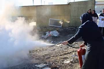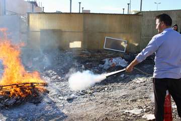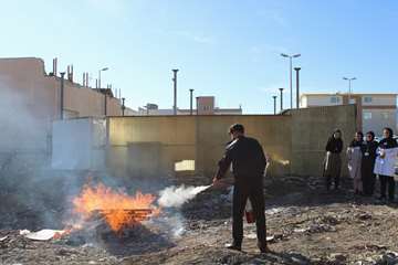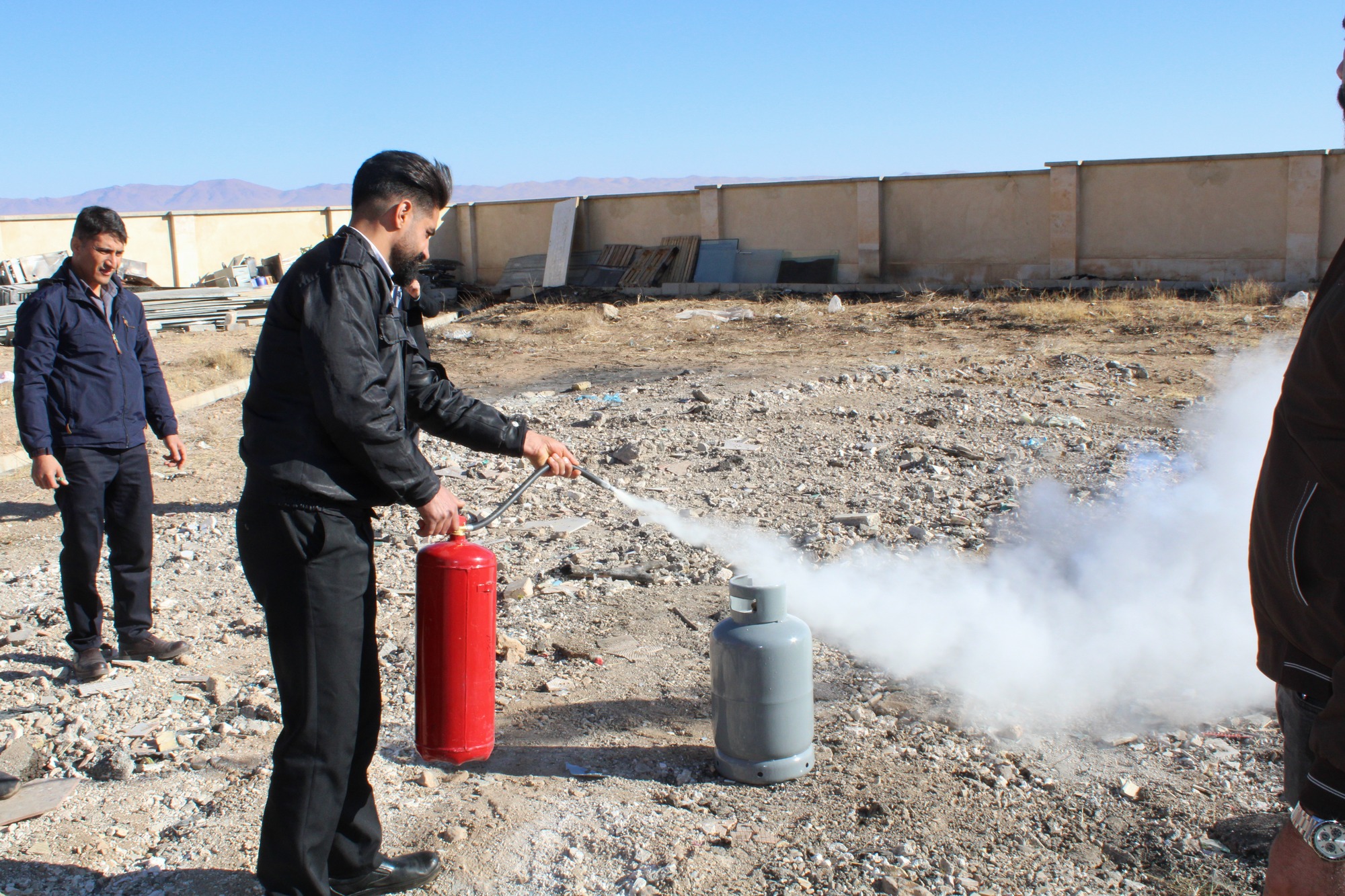 پس از بخش تئوری، آموزشها بهصورت عملی ادامه یافت و شرکتکنندگان با استفاده از مواد و تجهیزات مختلف، نحوه اطفای حریق را بهصورت میدانی تمرین کردند.