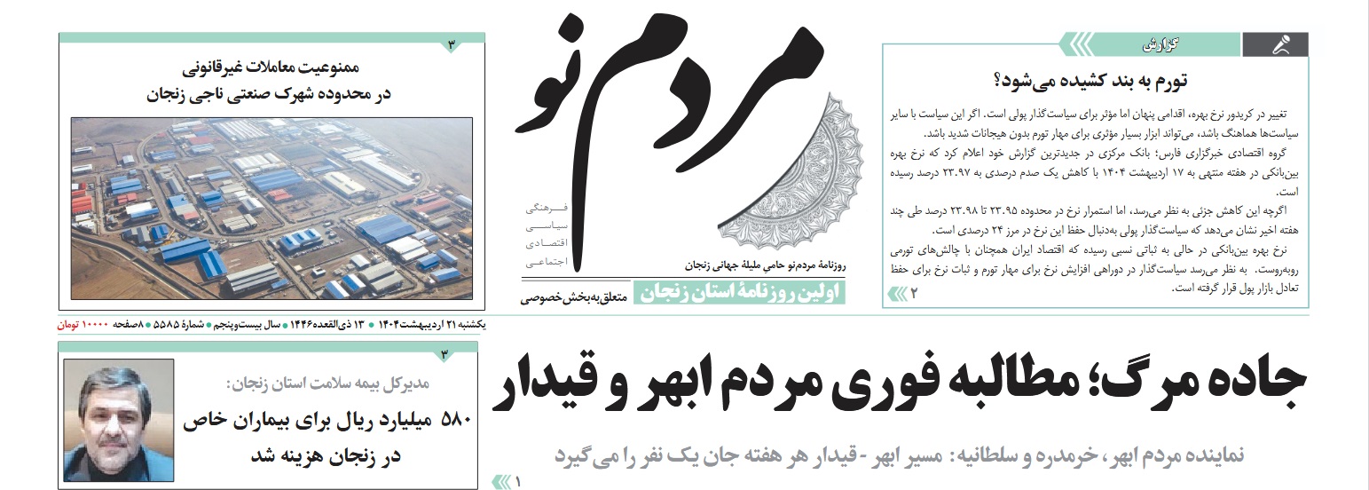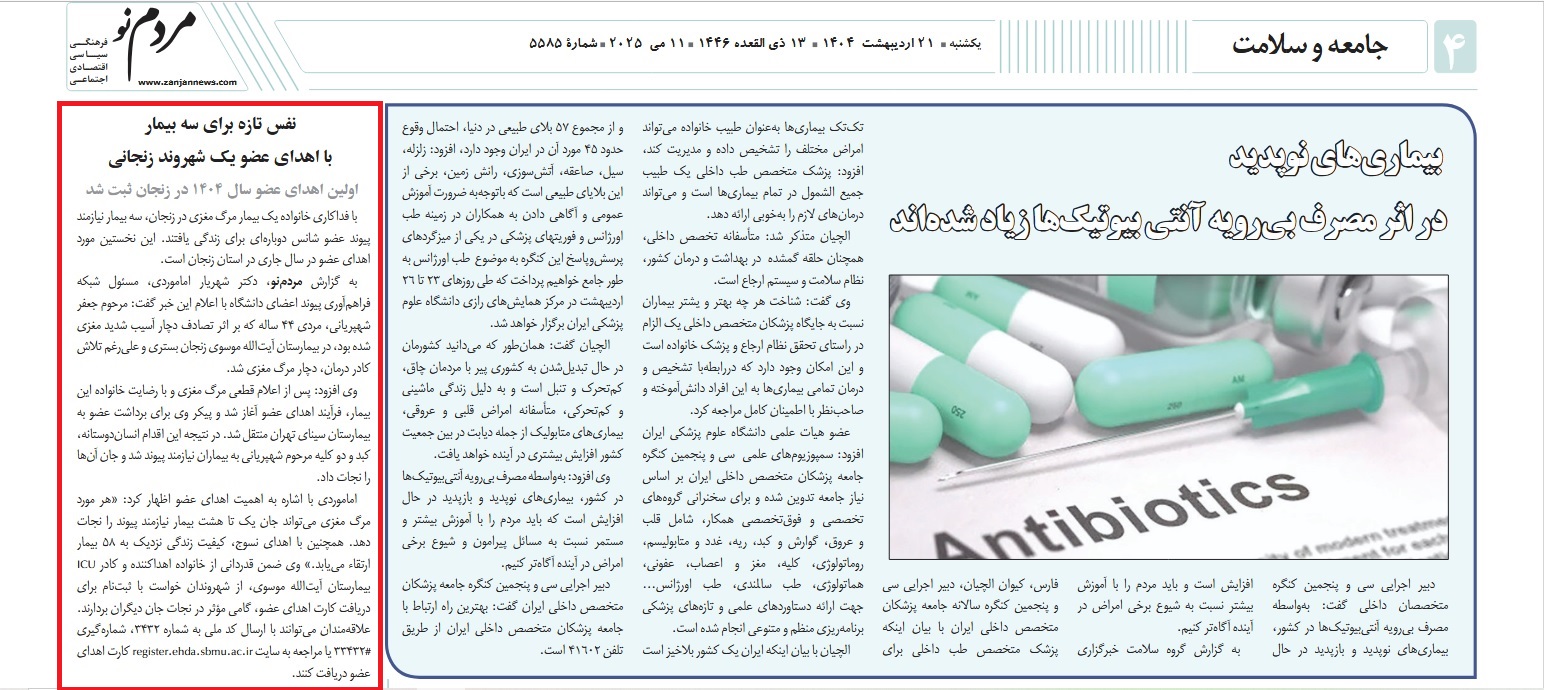 بازتاب خبرهای دانشگاه علوم پزشکی زنجان در نشریات- 21 اردیبهشت 1404/02/21 - 11:48 - تعداد بازدید: 16 - تعداد بازدیدکننده: 16 - کد خبر : 1725 - گروه خبری : رسانه های چاپی 1404 - تعداد نظرات : 0