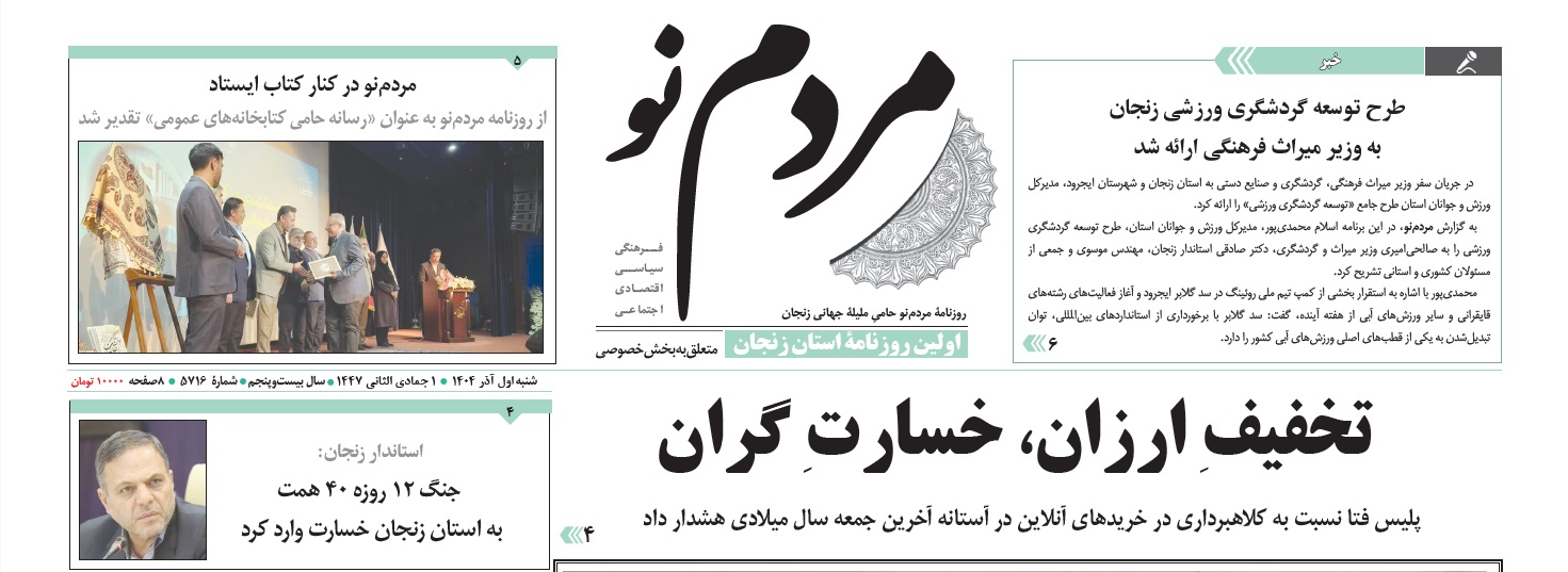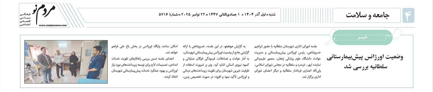 بازتاب خبرهای دانشگاه علوم پزشکی زنجان در نشریات - 1 آذر 1404/09/01 - 13:56 - تعداد بازدید: 3 - تعداد بازدیدکننده: 3 - کد خبر : 3007 - گروه خبری : رسانه های چاپی 1404 - تعداد نظرات : 0