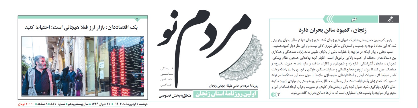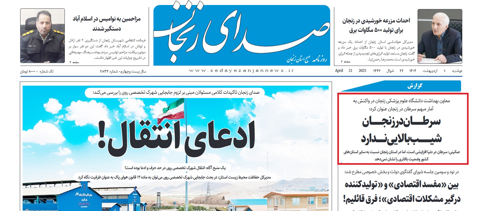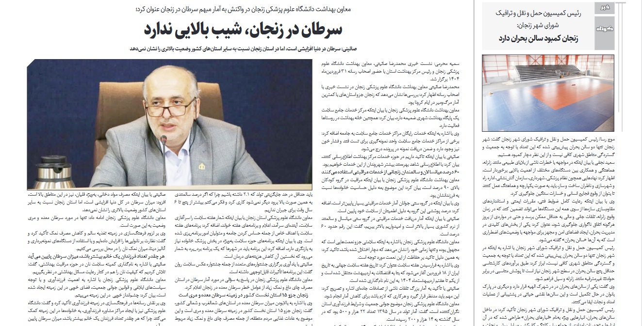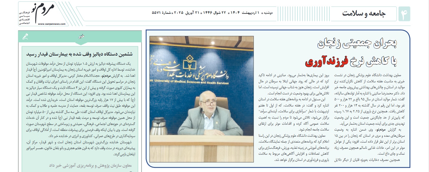 بازتاب خبرهای دانشگاه علوم پزشکی زنجان در نشریات - 1 اردیبهشت 1404/02/01 - 09:36 - تعداد بازدید: 12 - تعداد بازدیدکننده: 12 - کد خبر : 1530 - گروه خبری : رسانه های چاپی 1404 - تعداد نظرات : 0