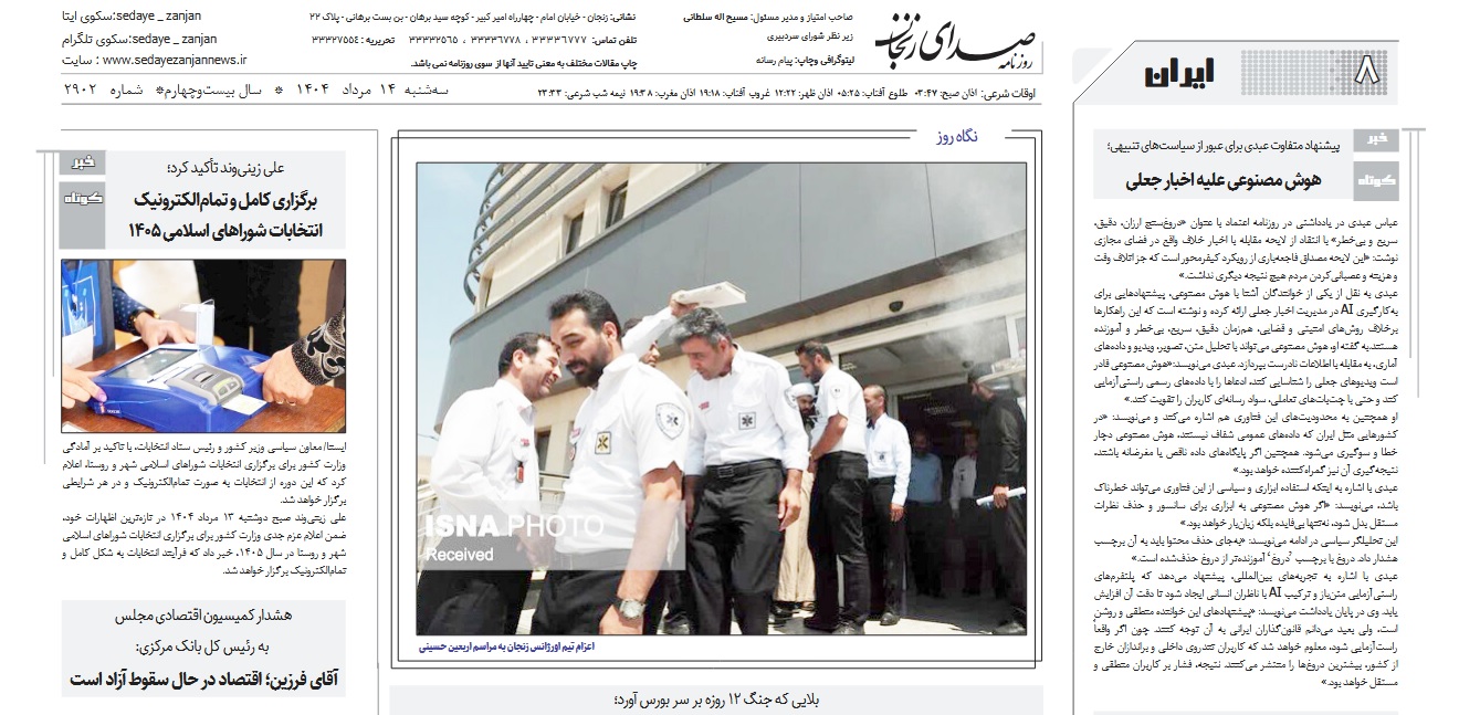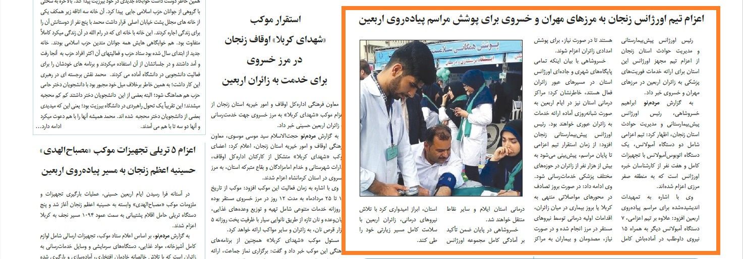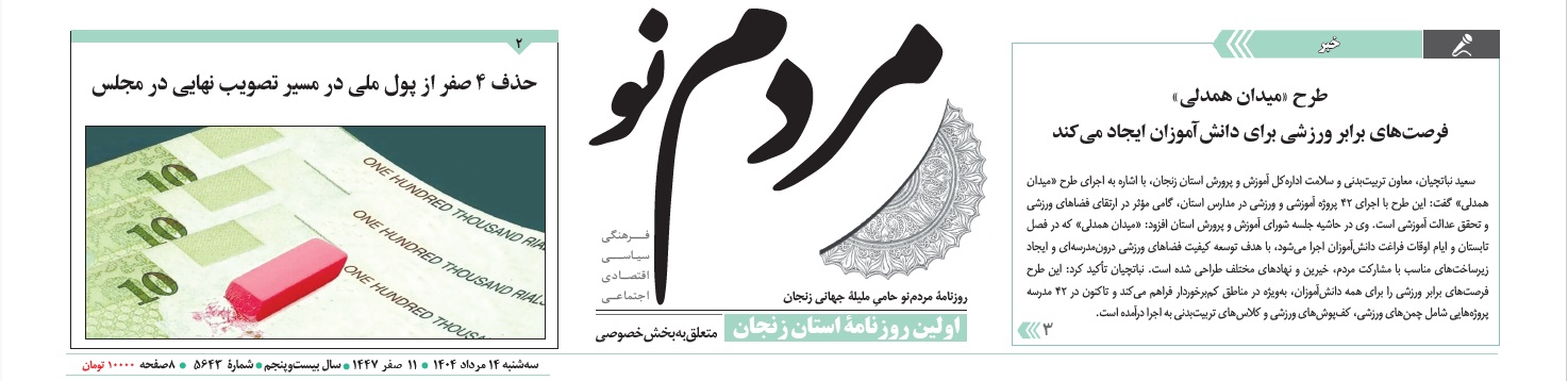 بازتاب خبرهای دانشگاه علوم پزشکی زنجان در نشریات - 14 مرداد 1404/05/14 - 06:48 - تعداد بازدید: 20 - تعداد بازدیدکننده: 20 - کد خبر : 2242 - گروه خبری : رسانه های چاپی 1404 - تعداد نظرات : 0