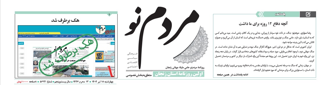 بازتاب خبرهای دانشگاه علوم پزشکی زنجان در نشریات - 18 تیر 1404/04/18 - 10:10 - تعداد بازدید: 15 - تعداد بازدیدکننده: 15 - کد خبر : 2097 - گروه خبری : رسانه های چاپی 1404 - تعداد نظرات : 0