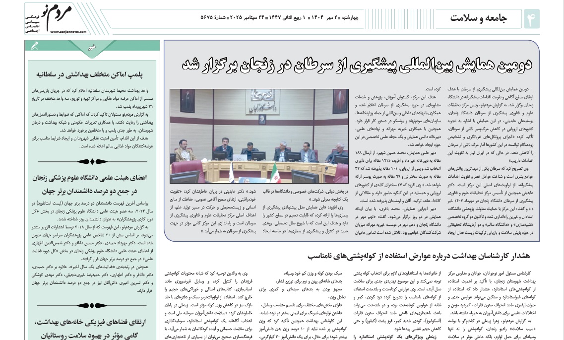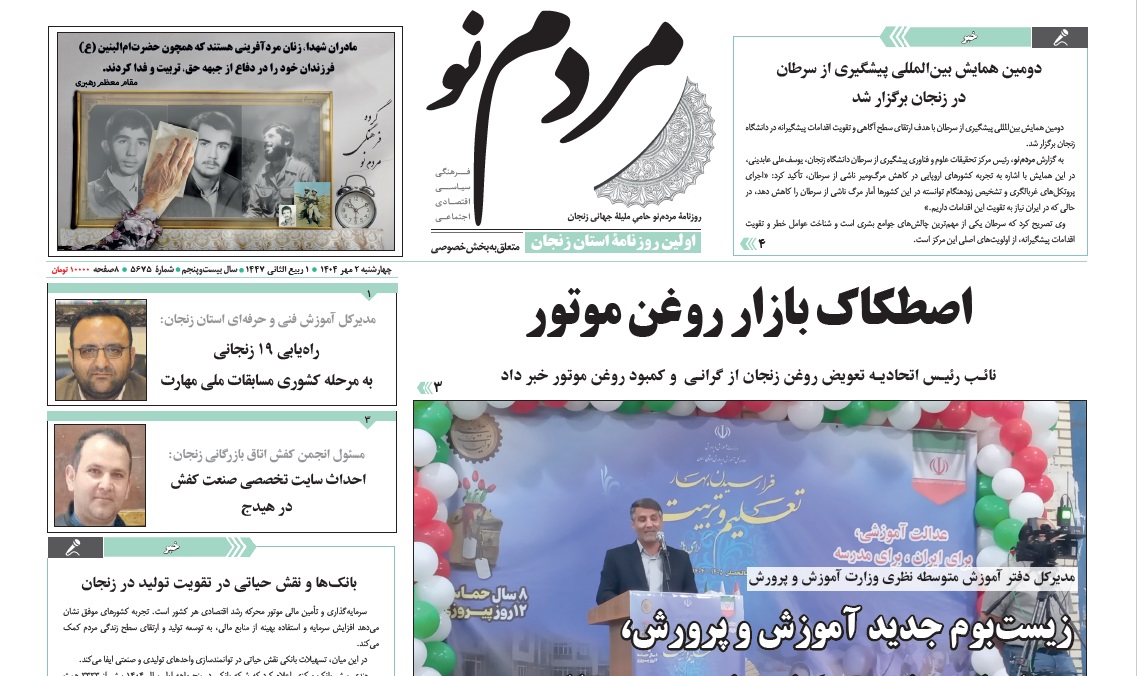 بازتاب خبرهای دانشگاه علوم پزشکی زنجان در نشریات - 2 مهر 1404/07/02 - 12:21 - تعداد بازدید: 18 - تعداد بازدیدکننده: 17 - کد خبر : 2463 - گروه خبری : رسانه های چاپی 1404 - تعداد نظرات : 0