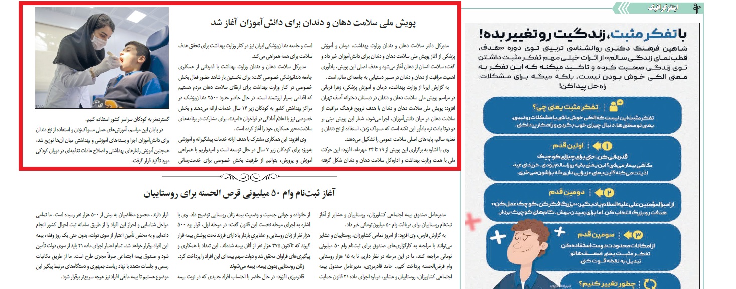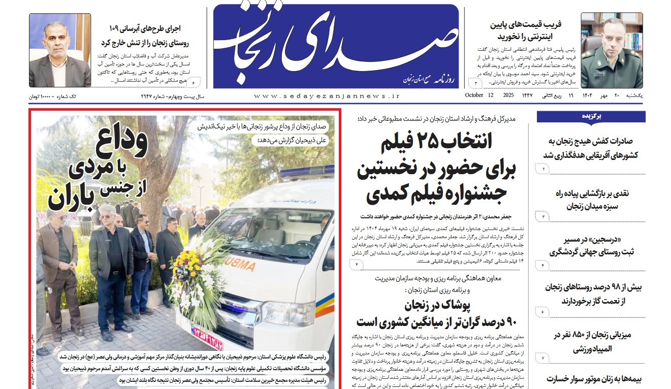 بازتاب خبرهای دانشگاه علوم پزشکی زنجان در نشریات - 20 مهر 1404/07/20 - 08:05 - تعداد بازدید: 18 - تعداد بازدیدکننده: 17 - کد خبر : 2598 - گروه خبری : رسانه های چاپی 1404 - تعداد نظرات : 0