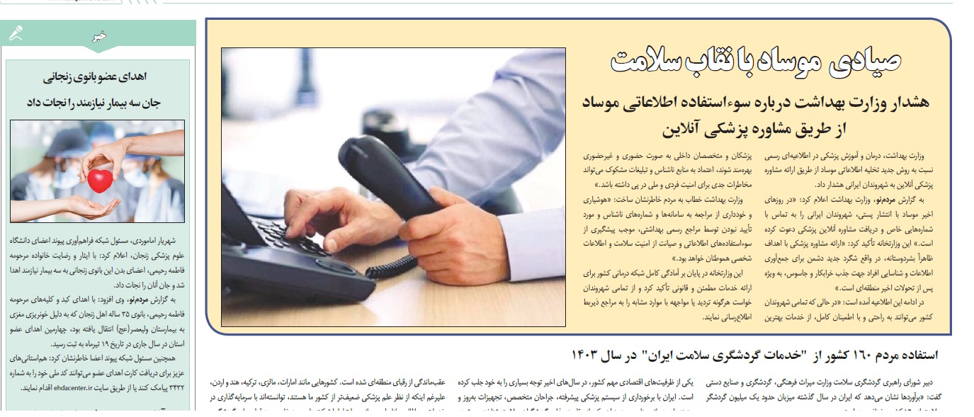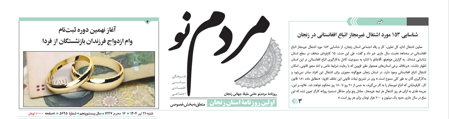 بازتاب خبرهای دانشگاه علوم پزشکی زنجان در نشریات - 21 تیر 1404/04/21 - 10:20 - تعداد بازدید: 18 - تعداد بازدیدکننده: 18 - کد خبر : 2098 - گروه خبری : رسانه های چاپی 1404 - تعداد نظرات : 0