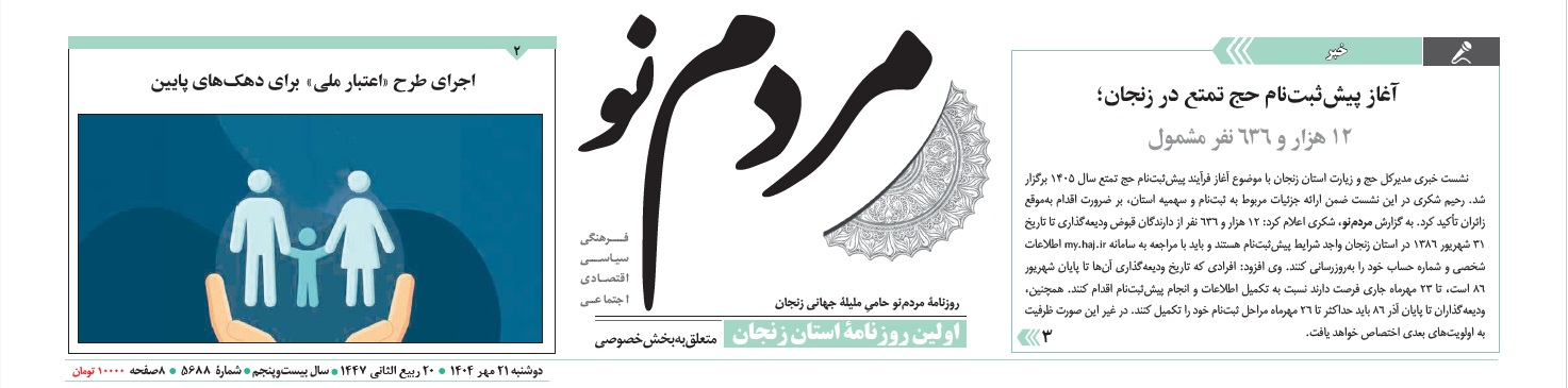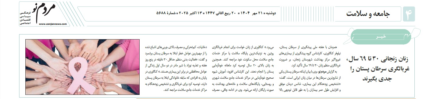 بازتاب خبرهای دانشگاه علوم پزشکی زنجان در نشریات - 21 مهر 1404/07/21 - 08:12 - تعداد بازدید: 26 - تعداد بازدیدکننده: 25 - کد خبر : 2600 - گروه خبری : رسانه های چاپی 1404 - تعداد نظرات : 0