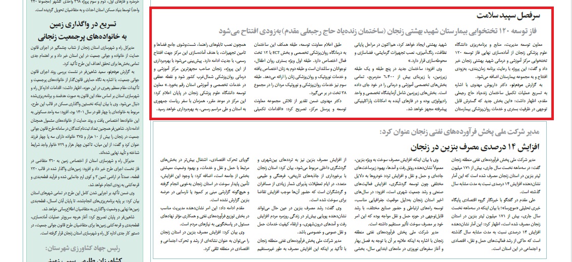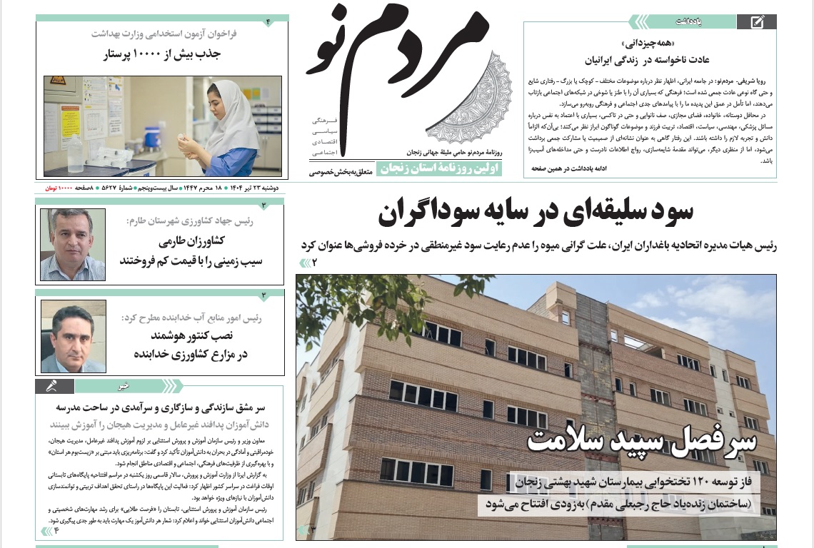 بازتاب خبرهای دانشگاه علوم پزشکی زنجان در نشریات - 23 تیر 1404/04/23 - 06:43 - تعداد بازدید: 19 - تعداد بازدیدکننده: 19 - کد خبر : 2101 - گروه خبری : رسانه های چاپی 1404 - تعداد نظرات : 0