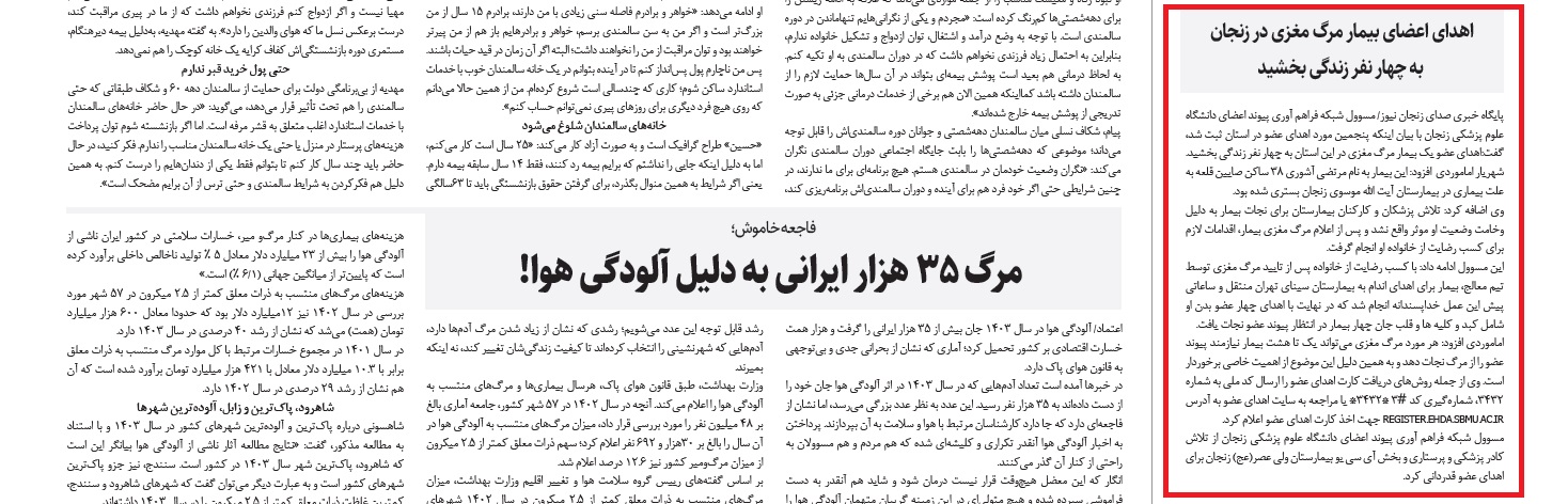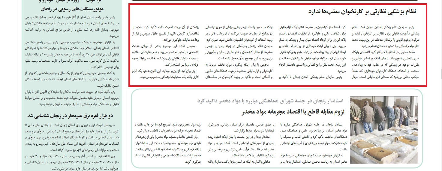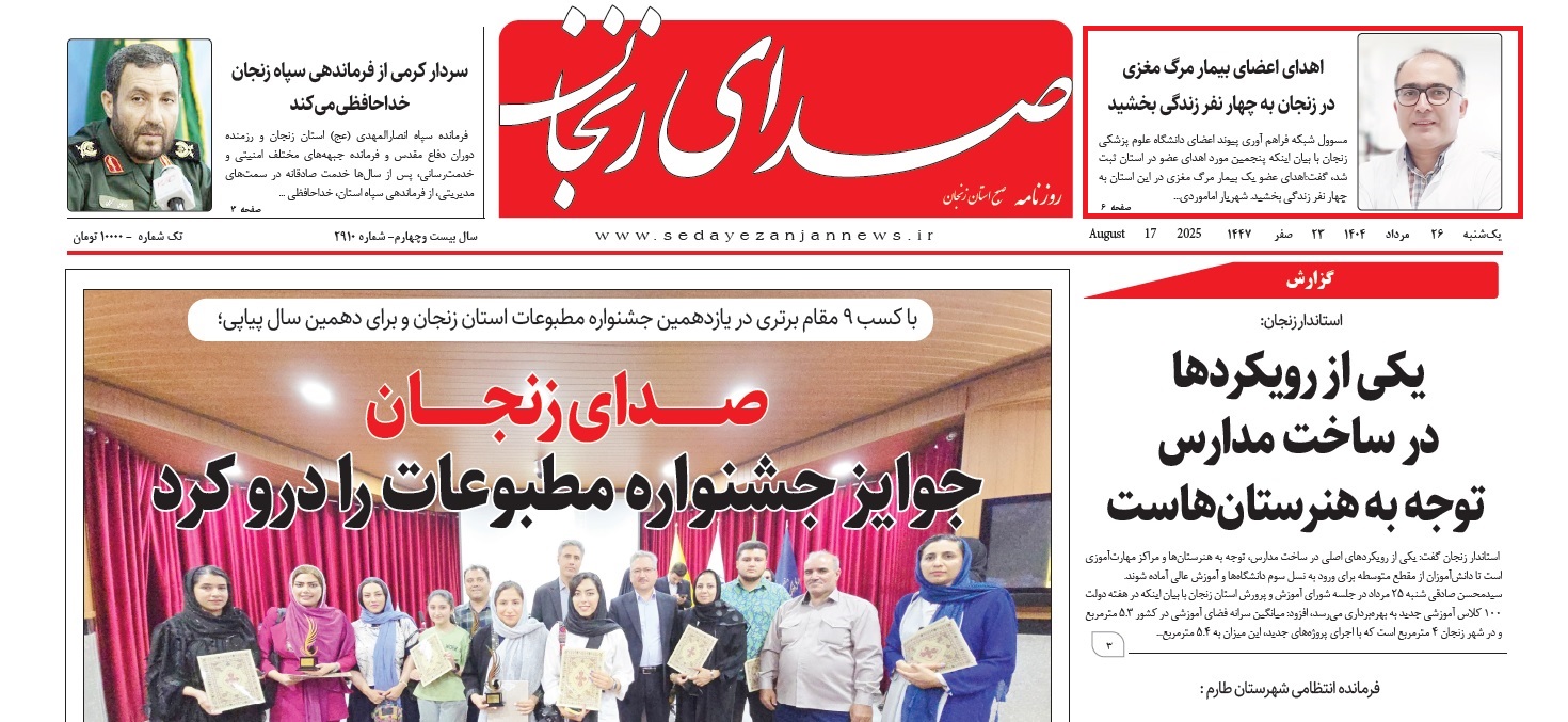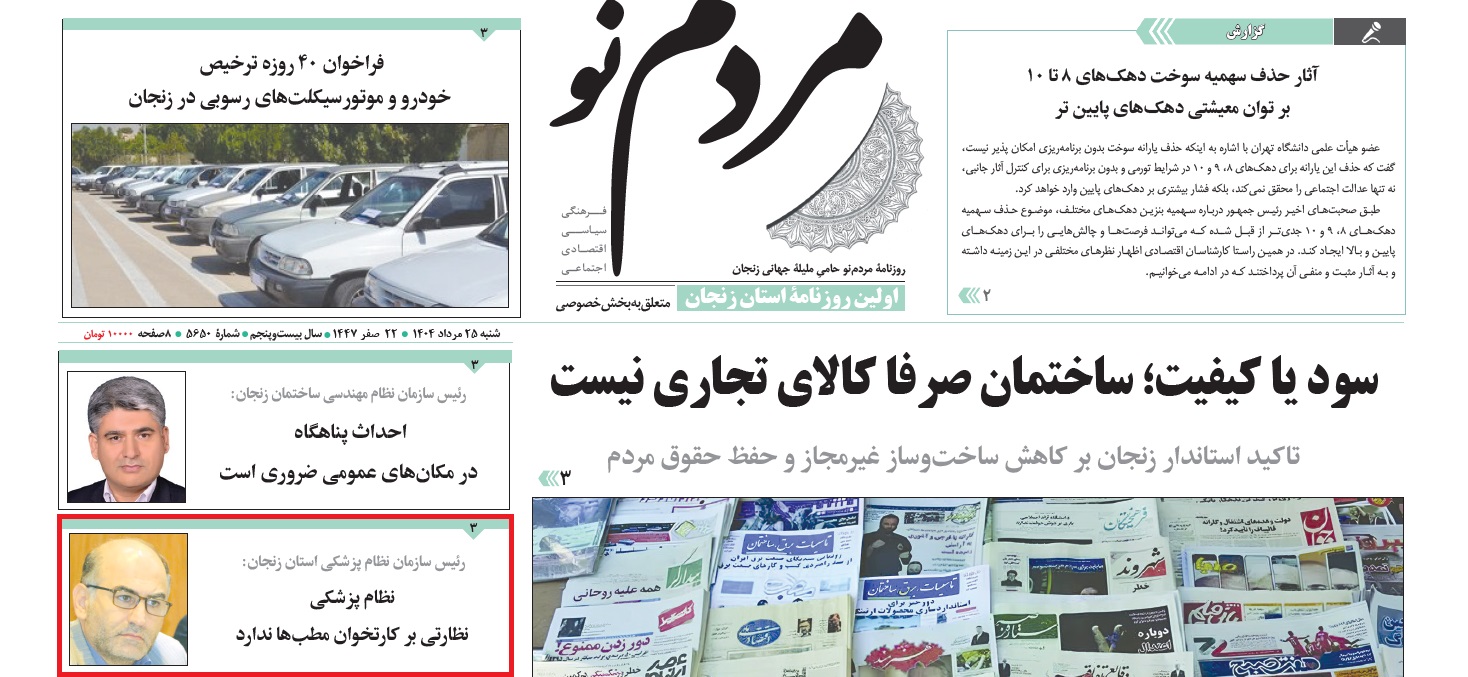 بازتاب خبرهای دانشگاه علوم پزشکی زنجان در نشریات - 26 مرداد 1404/05/26 - 09:25 - تعداد بازدید: 15 - تعداد بازدیدکننده: 15 - کد خبر : 2288 - گروه خبری : رسانه های چاپی 1404 - تعداد نظرات : 0