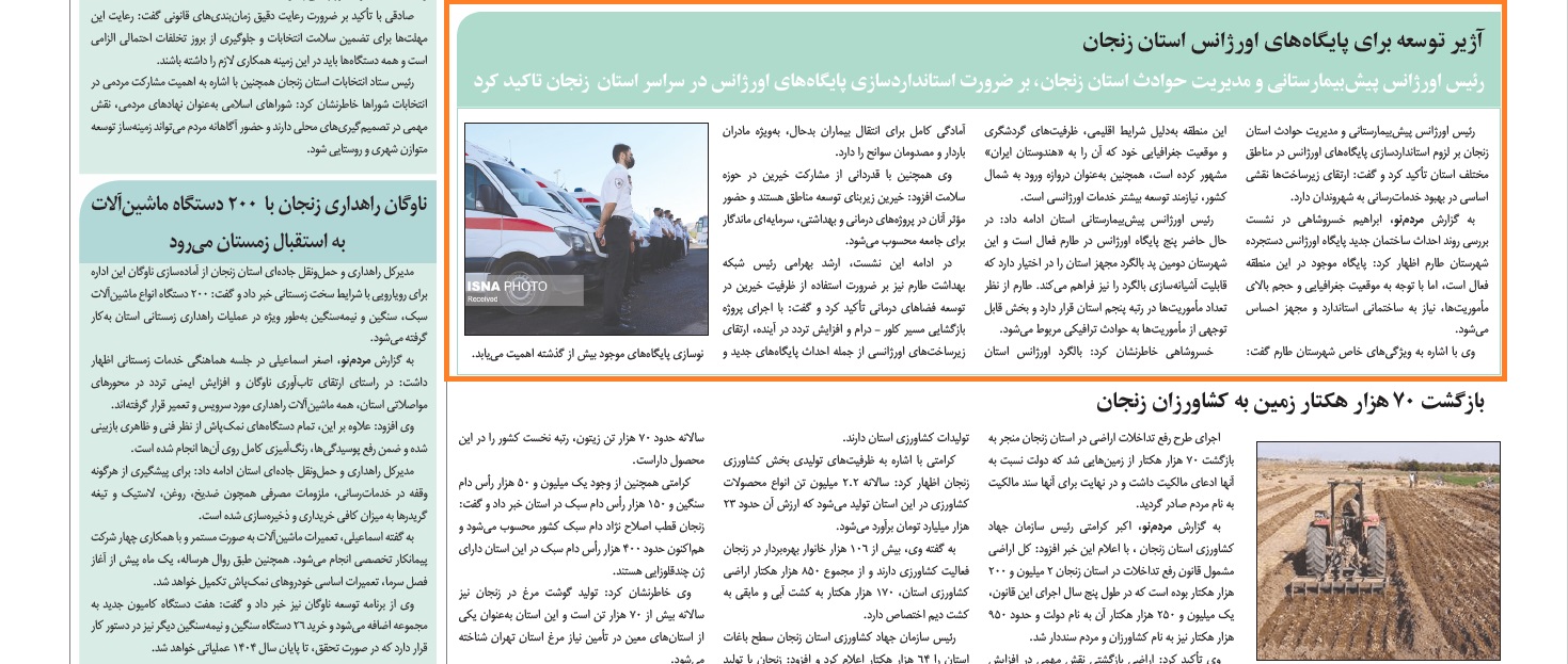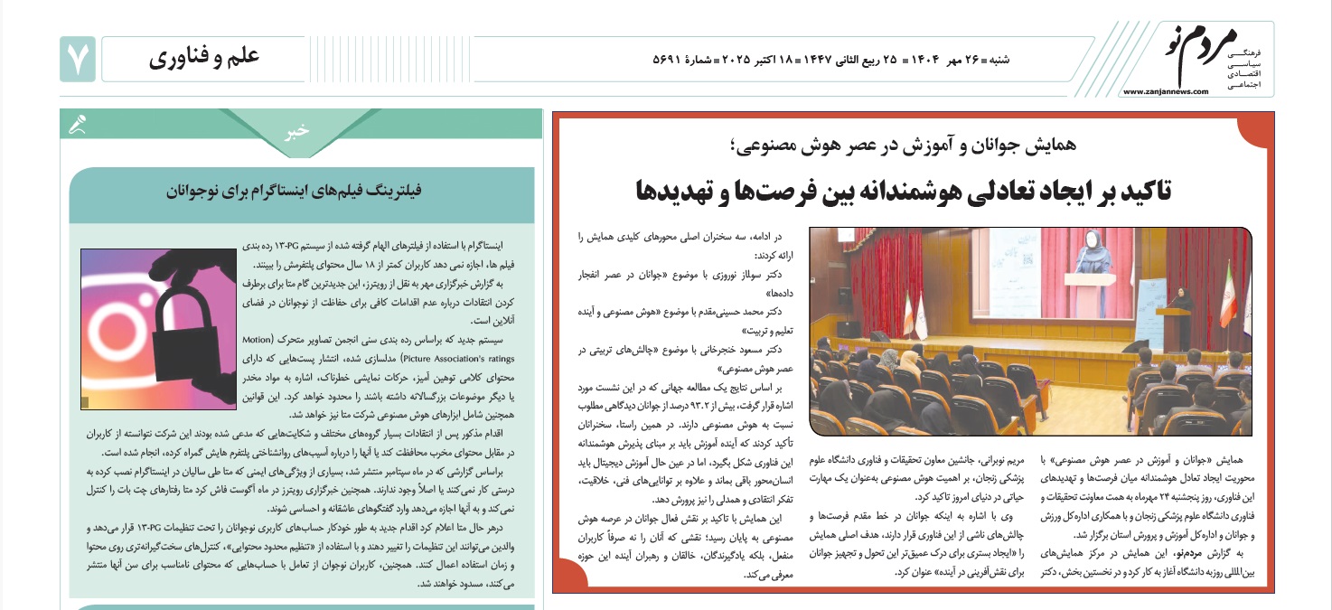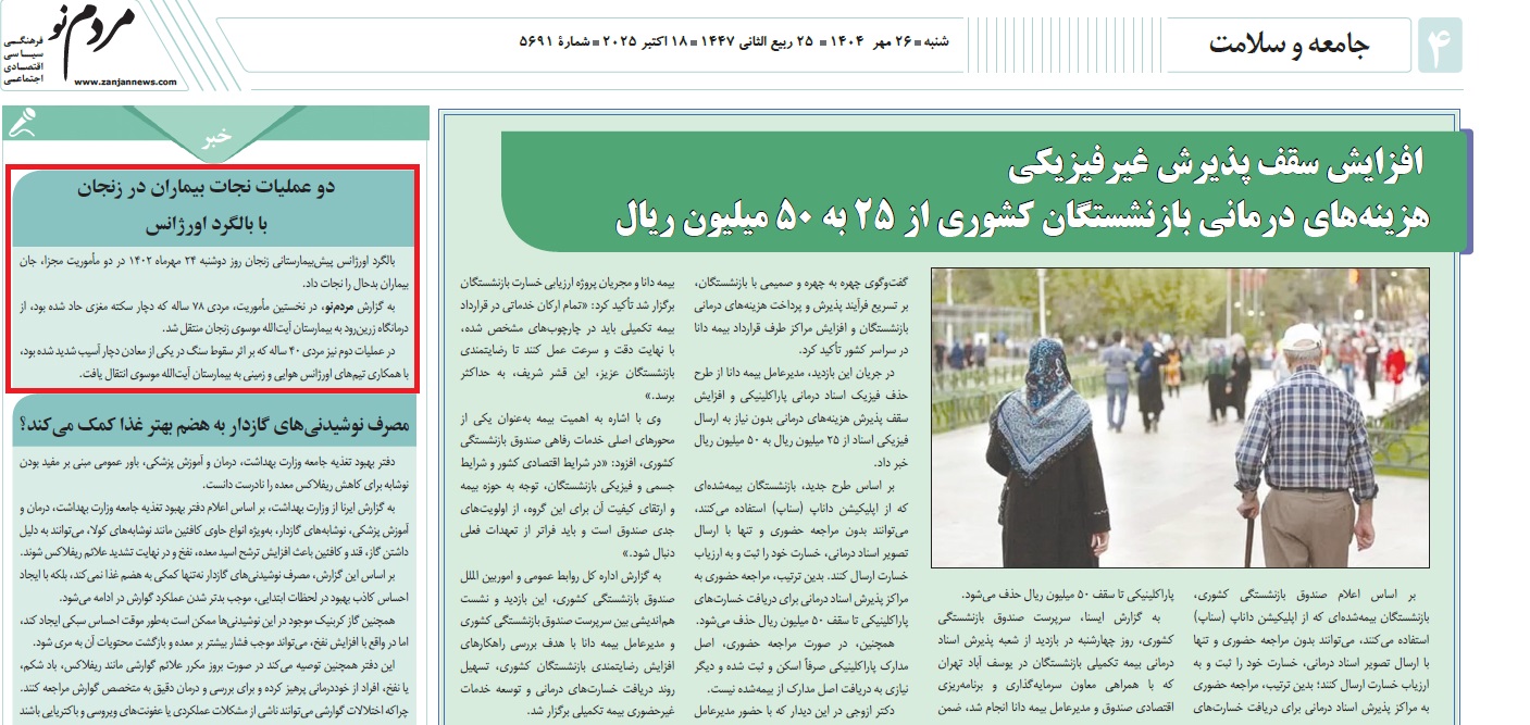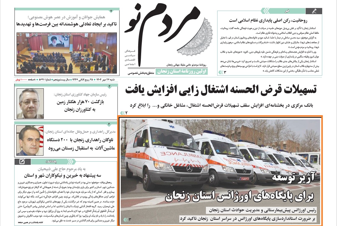 بازتاب خبرهای دانشگاه علوم پزشکی زنجان در نشریات - 26 مهر 1404/07/26 - 08:17 - تعداد بازدید: 16 - تعداد بازدیدکننده: 14 - کد خبر : 2658 - گروه خبری : رسانه های چاپی 1404 - تعداد نظرات : 0