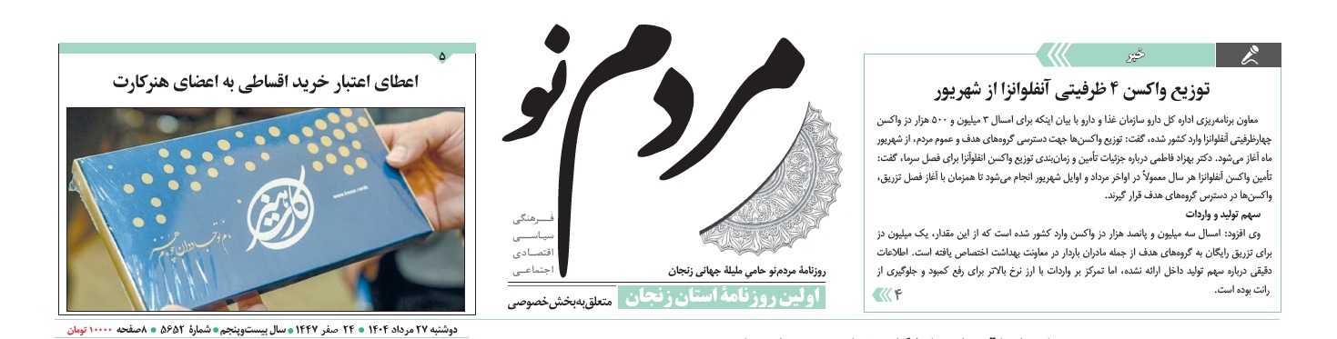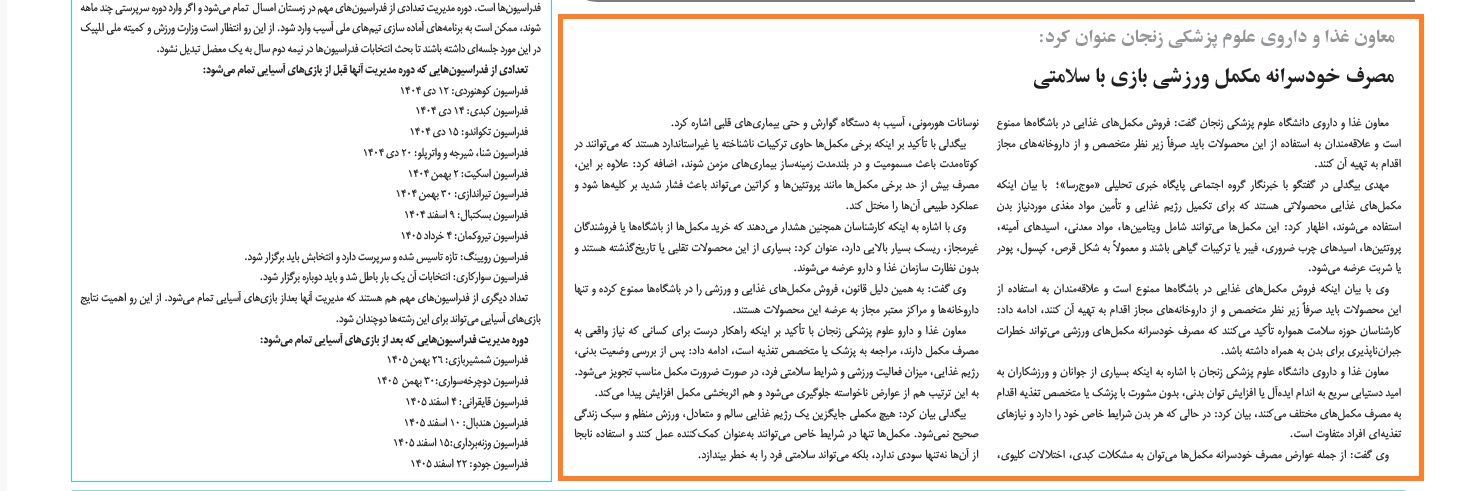 بازتاب خبرهای دانشگاه علوم پزشکی زنجان در نشریات - 27 مرداد 1404/05/27 - 12:39 - تعداد بازدید: 15 - تعداد بازدیدکننده: 14 - کد خبر : 2321 - گروه خبری : رسانه های چاپی 1404 - تعداد نظرات : 0