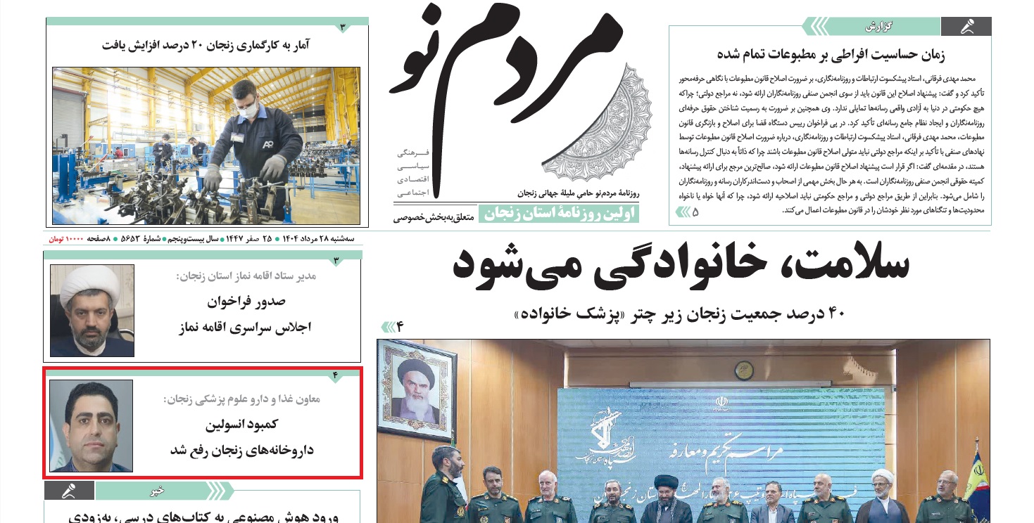 بازتاب خبرهای دانشگاه علوم پزشکی زنجان در نشریات - 28 مرداد 1404/05/28 - 12:32 - تعداد بازدید: 13 - تعداد بازدیدکننده: 13 - کد خبر : 2320 - گروه خبری : رسانه های چاپی 1404 - تعداد نظرات : 0