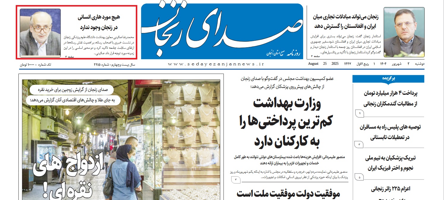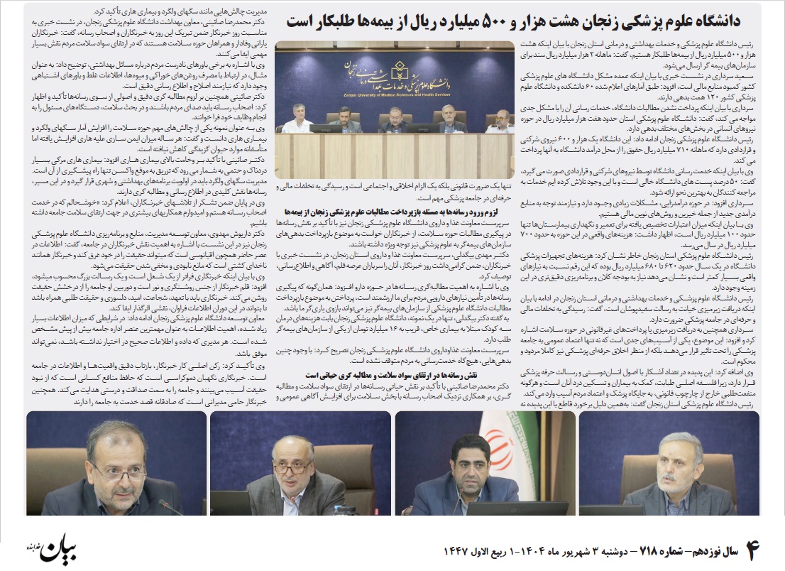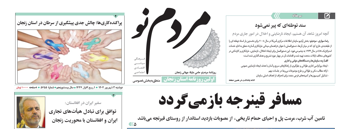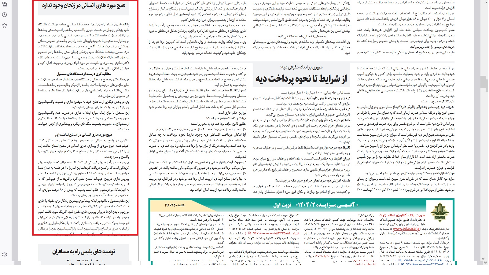 بازتاب خبرهای دانشگاه علوم پزشکی زنجان در نشریات - 3 شهریور 1404/06/03 - 06:40 - تعداد بازدید: 17 - تعداد بازدیدکننده: 16 - کد خبر : 2324 - گروه خبری : رسانه های چاپی 1404 - تعداد نظرات : 0