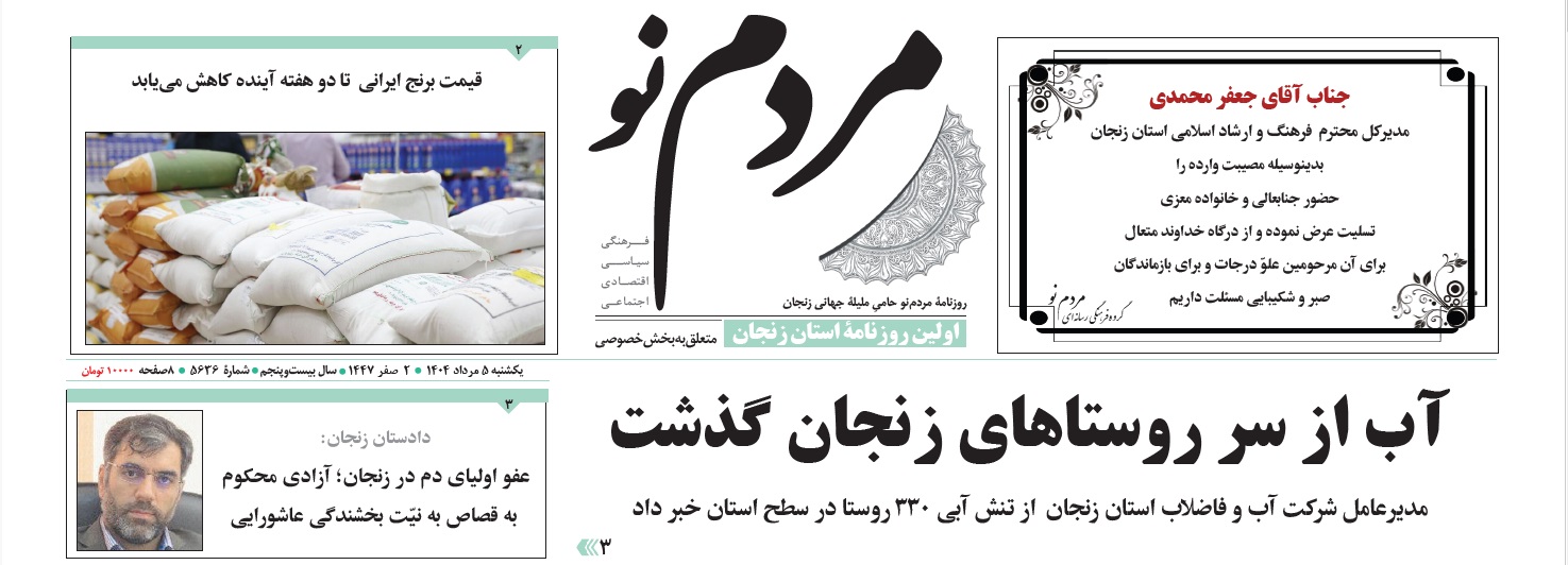 بازتاب خبرهای دانشگاه علوم پزشکی زنجان در نشریات - 5 مرداد 1404/05/05 - 08:37 - تعداد بازدید: 21 - تعداد بازدیدکننده: 19 - کد خبر : 2205 - گروه خبری : رسانه های چاپی 1404 - تعداد نظرات : 0