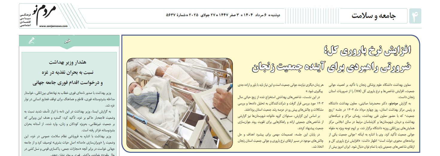 بازتاب خبرهای دانشگاه علوم پزشکی زنجان در نشریات - 6 مرداد 1404/05/06 - 08:42 - تعداد بازدید: 14 - تعداد بازدیدکننده: 14 - کد خبر : 2206 - گروه خبری : رسانه های چاپی 1404 - تعداد نظرات : 0