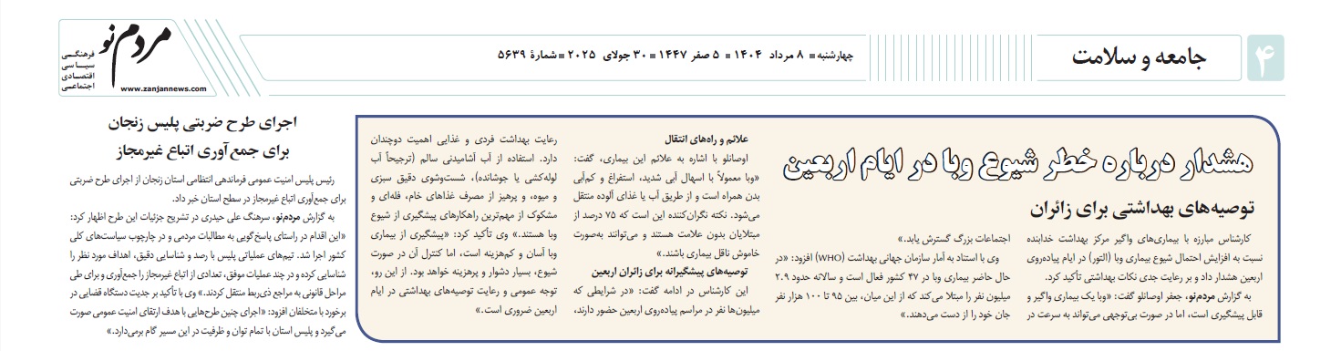 بازتاب خبرهای دانشگاه علوم پزشکی زنجان در نشریات - 8 مرداد 1404/05/08 - 08:44 - تعداد بازدید: 15 - تعداد بازدیدکننده: 15 - کد خبر : 2207 - گروه خبری : رسانه های چاپی 1404 - تعداد نظرات : 0