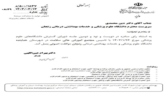 رئیس دانشگاه علوم پزشکی زنجان: اخذ مجوز تأسیس مجتمع آموزش عالی سلامت درخدابنده