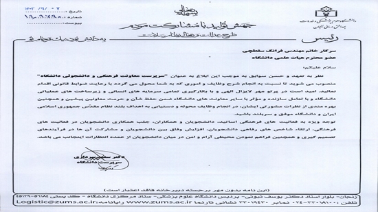 نظر به تعهد و حسن سوابق به موجب این ابلاغ به عنوان «سرپرست معاونت فرهنگی و دانشجویی دانشگاه» منصوب میشوید تا نسبت به انجام شرح وظایف و اموری که به شما محول میگردد با رعایت ضوابط قانونی اقدام نمایید. امید است در پرتو مهر لایزال الهی و با به کارگیری تمامی سرمایههای انسانی و زیرساختهای عملیاتی دانشگاه و با تعامل سازنده و موثر با سایر معاونتهای دانشگاه ضمن حفظ شان و حرمت معاونین پیشین و همچنین بهرهمندی از نظرات مشورتی ایشان، در انجام وظایف محوله و دستیابی به اهداف بلند نظام مقدس جمهوری اسلامی ایران و دانشگاه موفق و سربلند باشید.