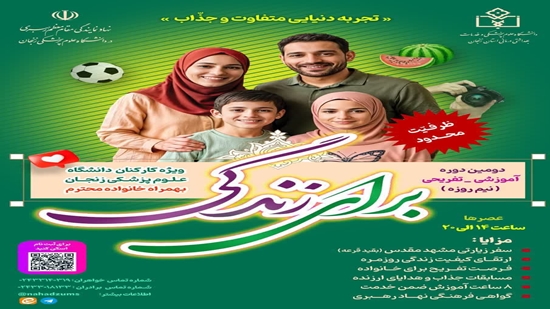 دومین دوره آموزشی_تفریحی «برای زندگی» به‌ همت نهاد نمایندگی مقام معظم رهبری با همکاری بخش‌های مختلف دانشگاه علوم پزشکی زنجان و حضور جمعی از کارکنان دانشگاه به همراه خانواده، در باغ رفاهی دانشگاه زنجان، برگزار می‌شود.